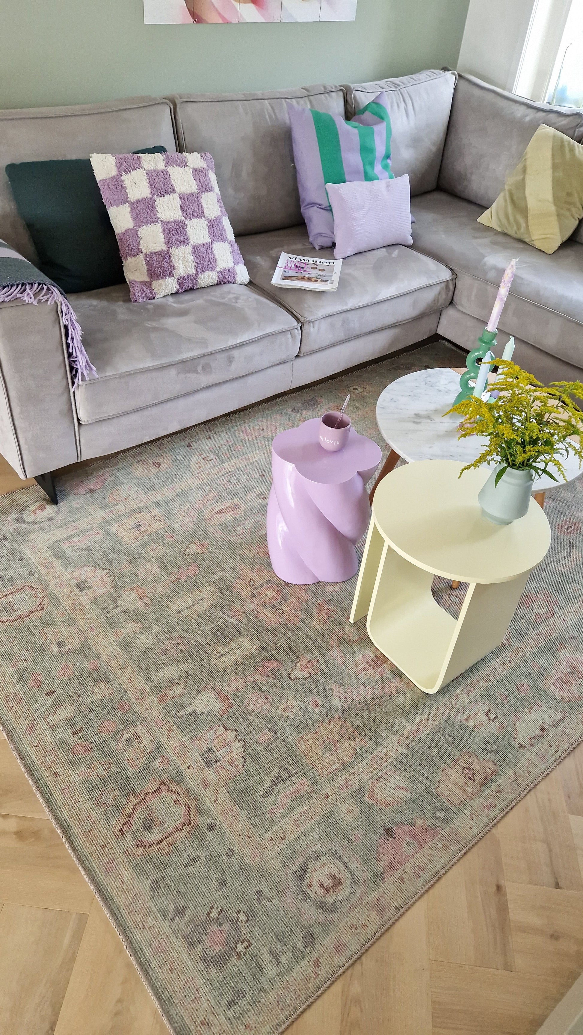 Die Teppiche aus der Vera Kollektion bestehen zu 80% aus recycelter Baumwolle und zu 20% aus Polyester. Sie sind 100% recycelbar und umweltfreundlich.