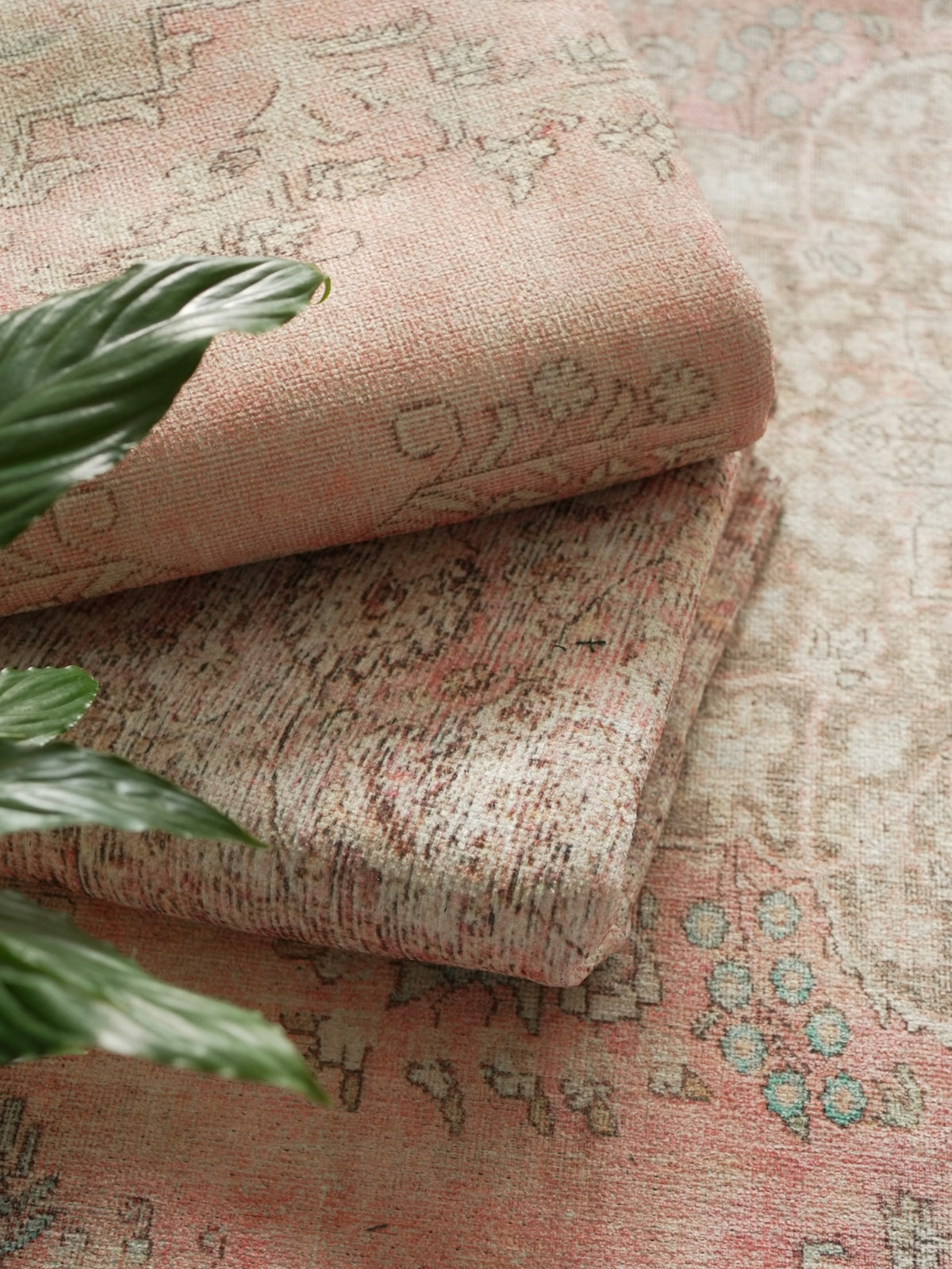 Die Teppiche aus der Vera Kollektion bestehen zu 80% aus recycelter Baumwolle und zu 20% aus Polyester. Sie sind 100% recycelbar und umweltfreundlich.