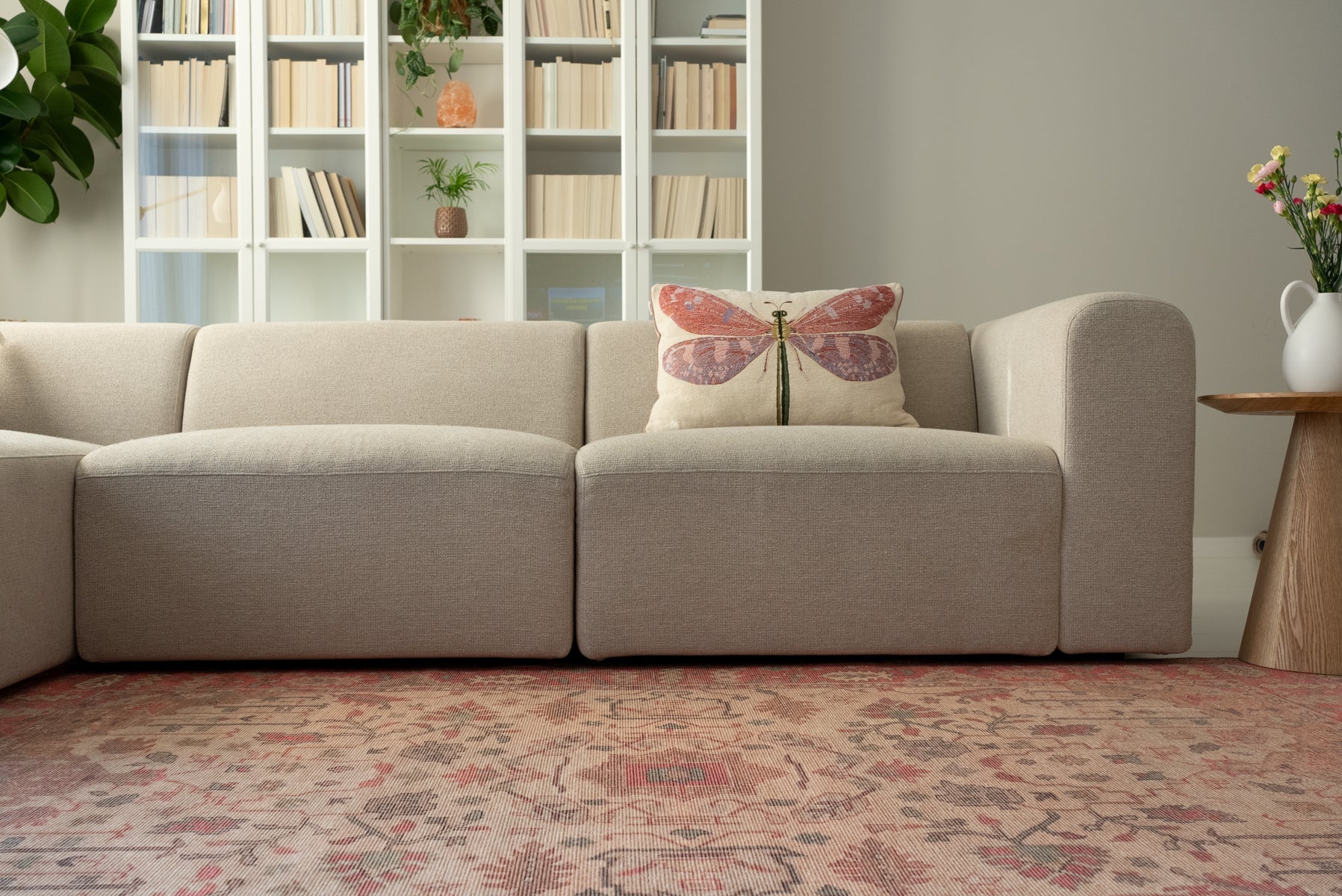 Die Teppiche aus der Vera Kollektion bestehen zu 80% aus recycelter Baumwolle und zu 20% aus Polyester. Sie sind 100% recycelbar und umweltfreundlich.