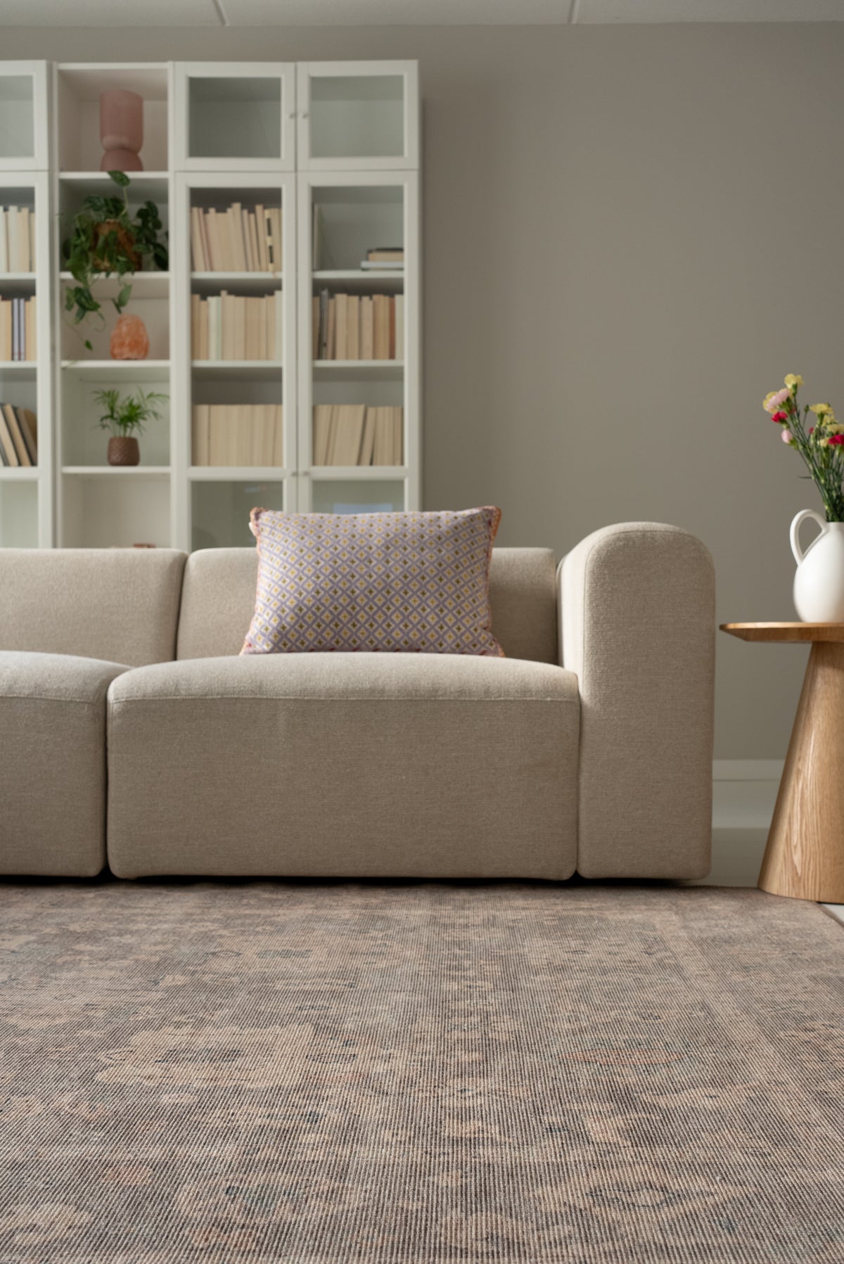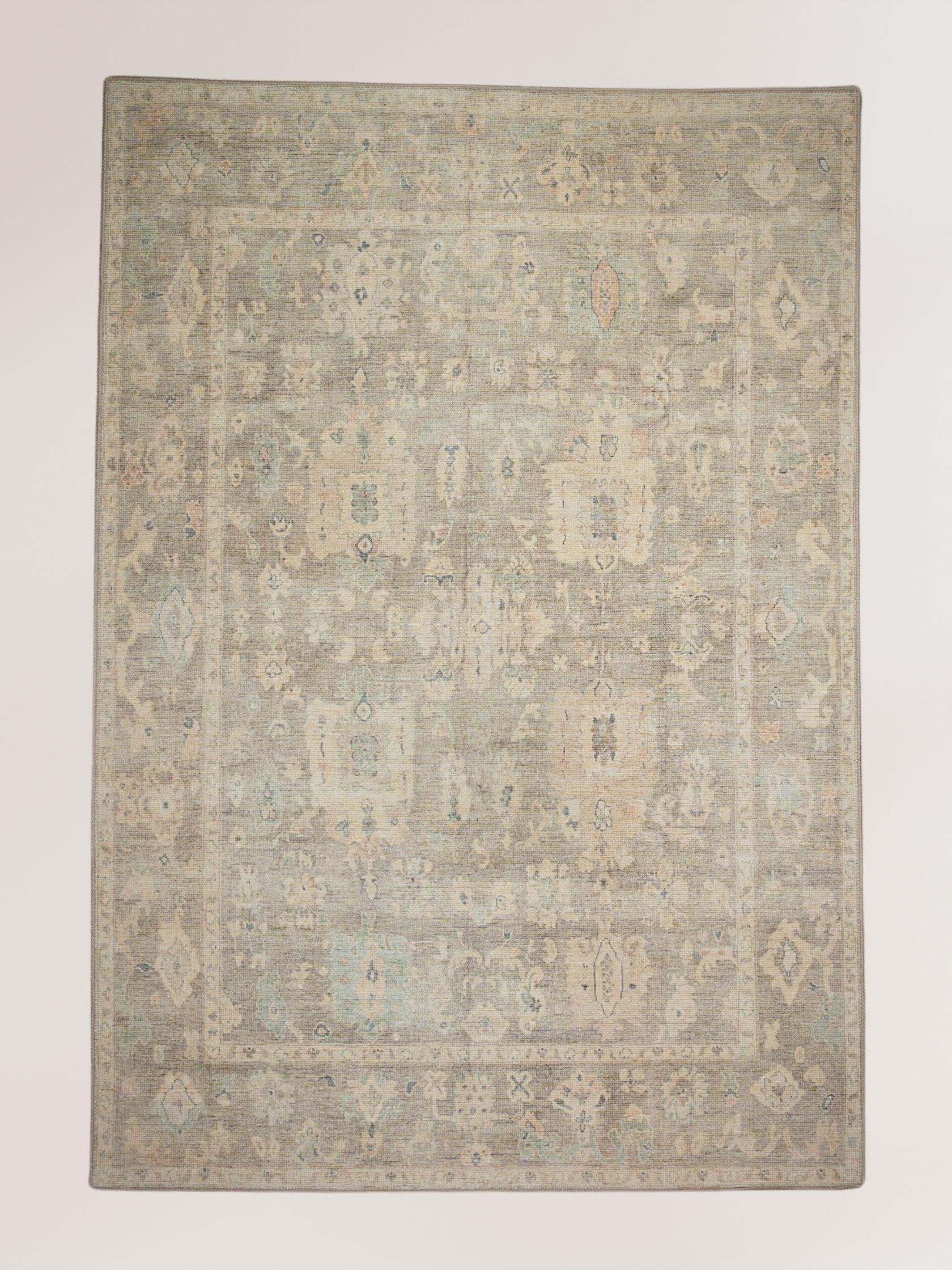 Dieser neutrale Teppich ist vielseitig und eignet sich hervorragend als Teppich für einen Eingangsbereich, Schlafzimmer oder Wohnzimmer, sowohl in modernen als auch in traditionellen Interieurs.