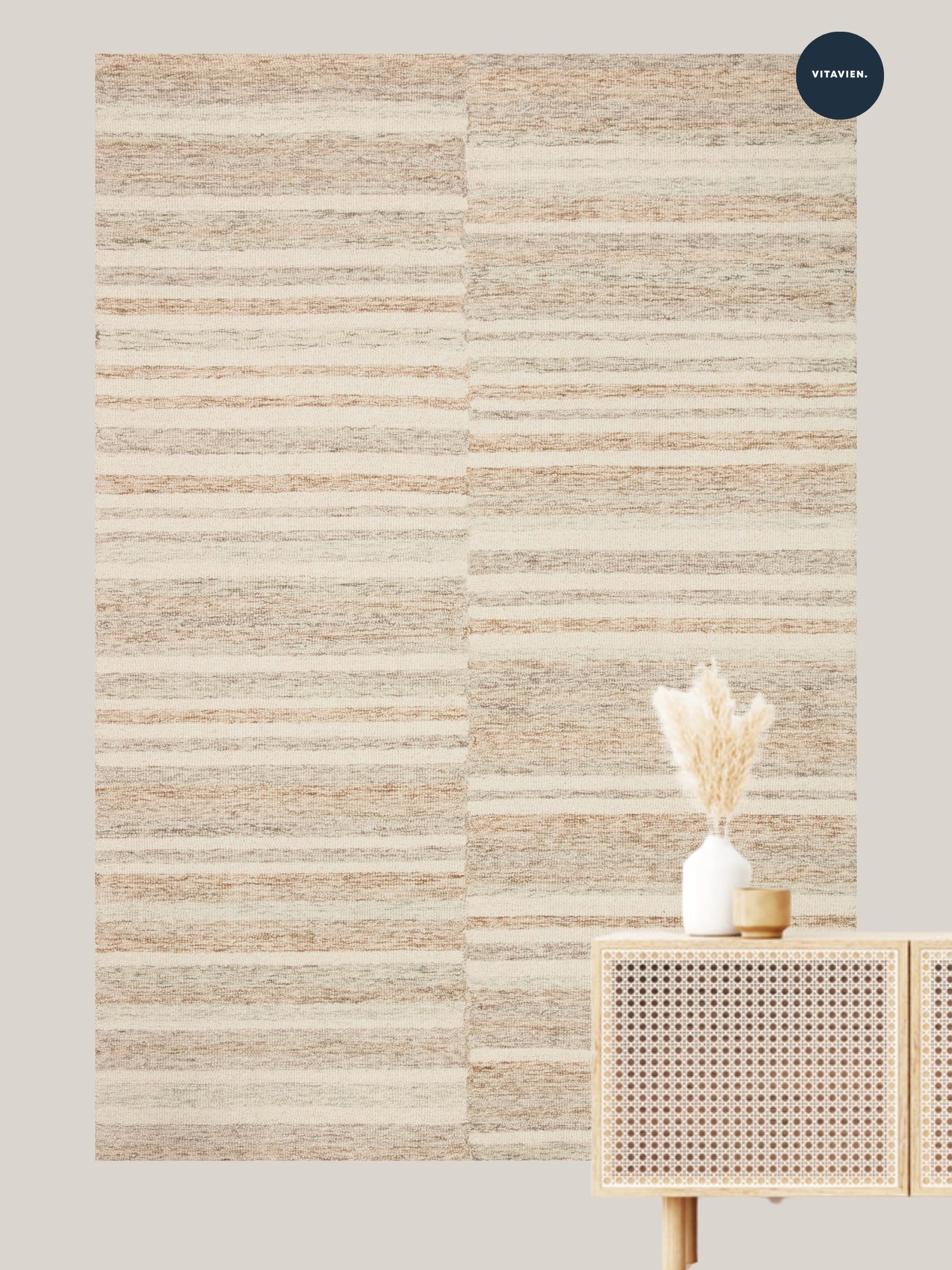 Dieser neutrale Teppich ist vielseitig und eignet sich hervorragend als Teppich für einen Eingangsbereich, Schlafzimmer oder Wohnzimmer, sowohl in modernen als auch in traditionellen Interieurs.