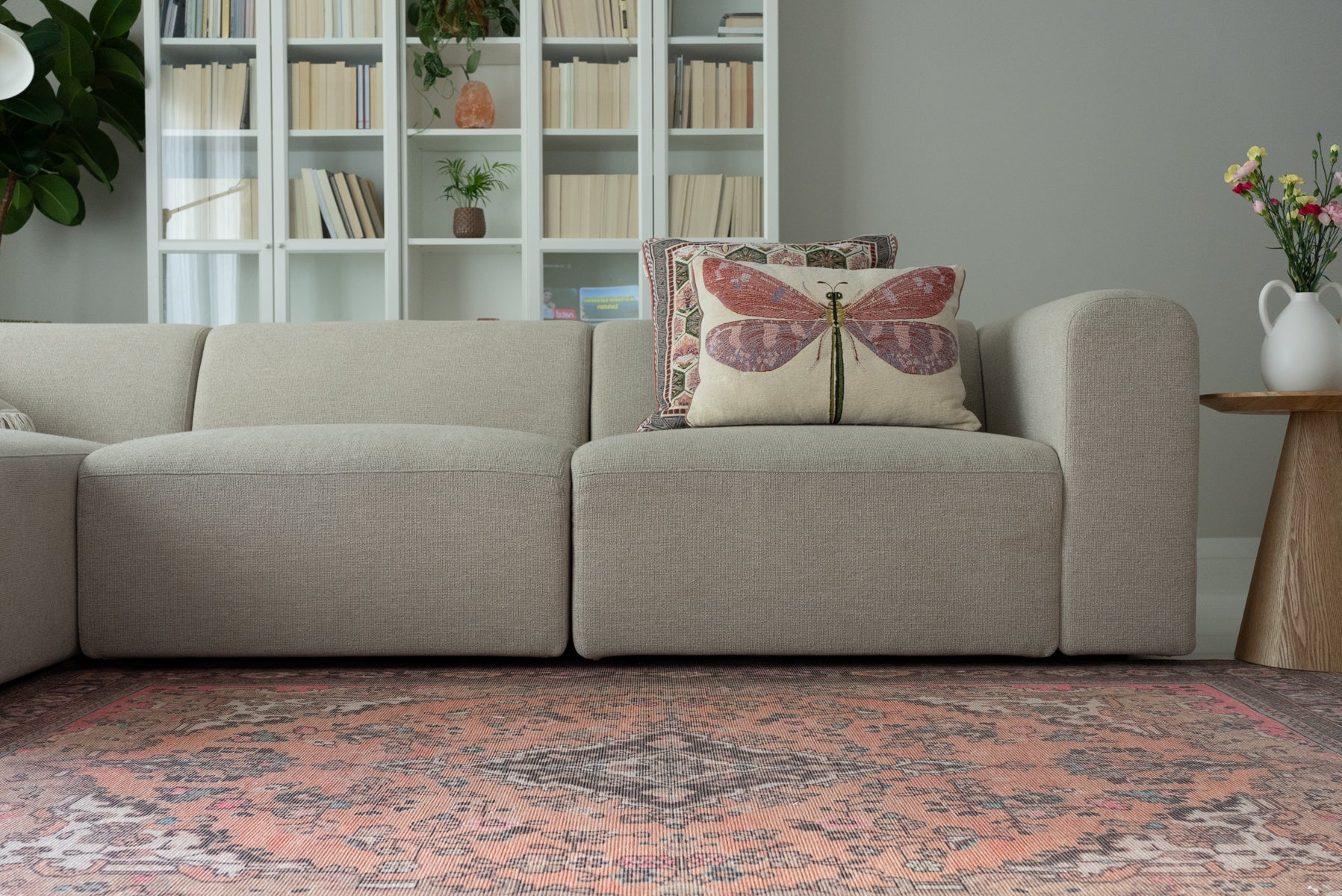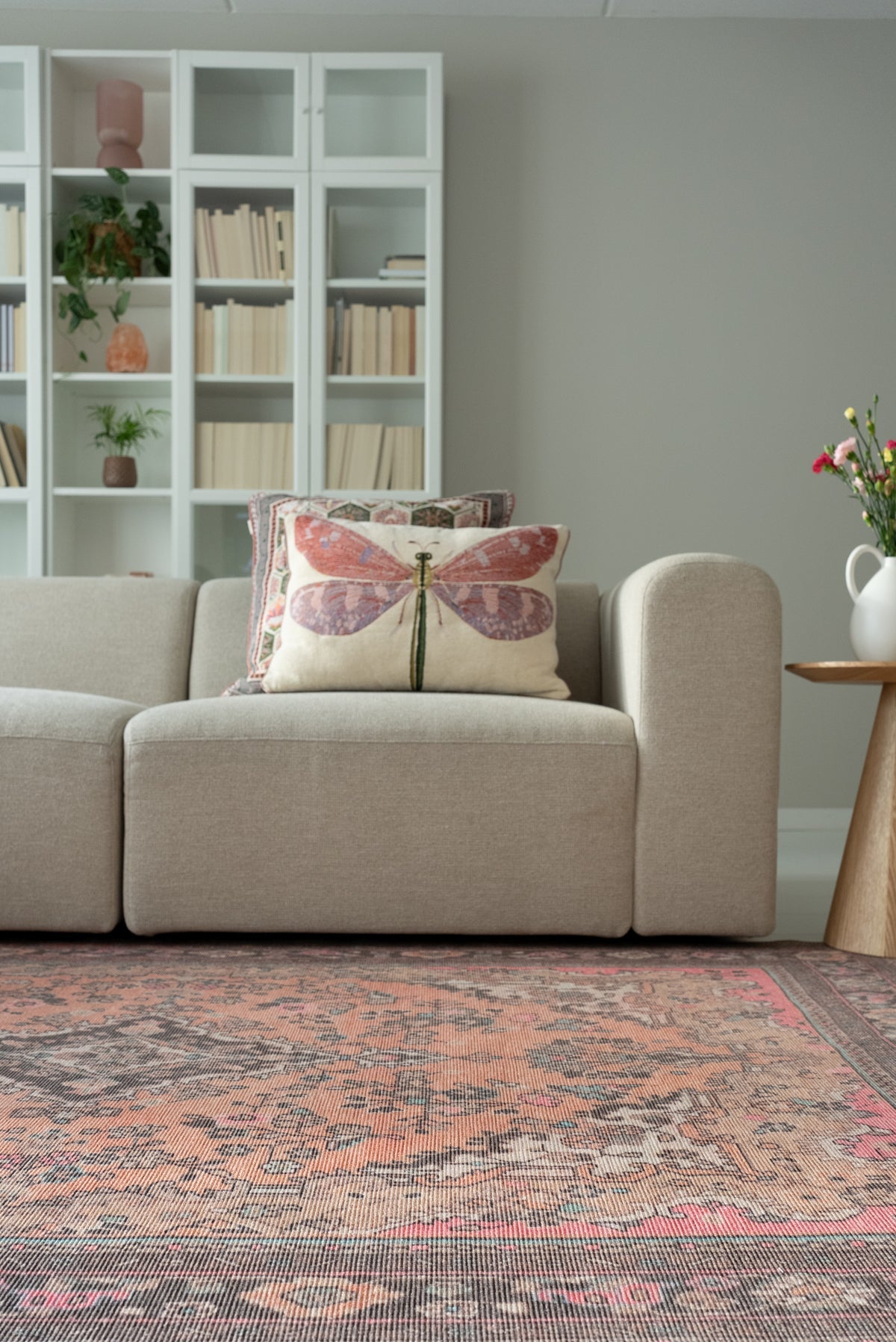 Die Teppiche aus der Vera Kollektion bestehen zu 80% aus recycelter Baumwolle und zu 20% aus Polyester. Sie sind 100% recycelbar und umweltfreundlich.