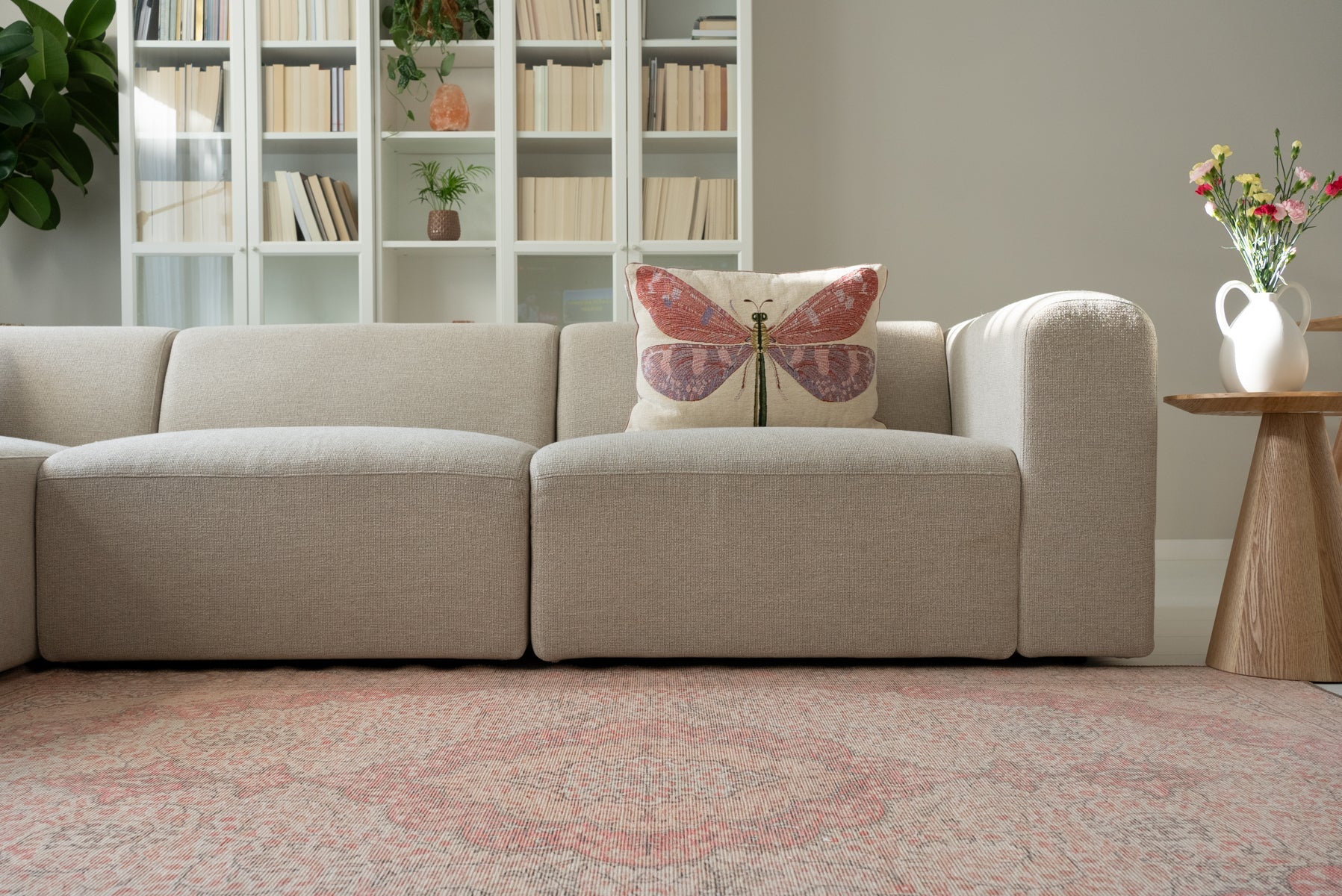 Die Teppiche aus der Vera Kollektion bestehen zu 80% aus recycelter Baumwolle und zu 20% aus Polyester. Sie sind 100% recycelbar und umweltfreundlich.