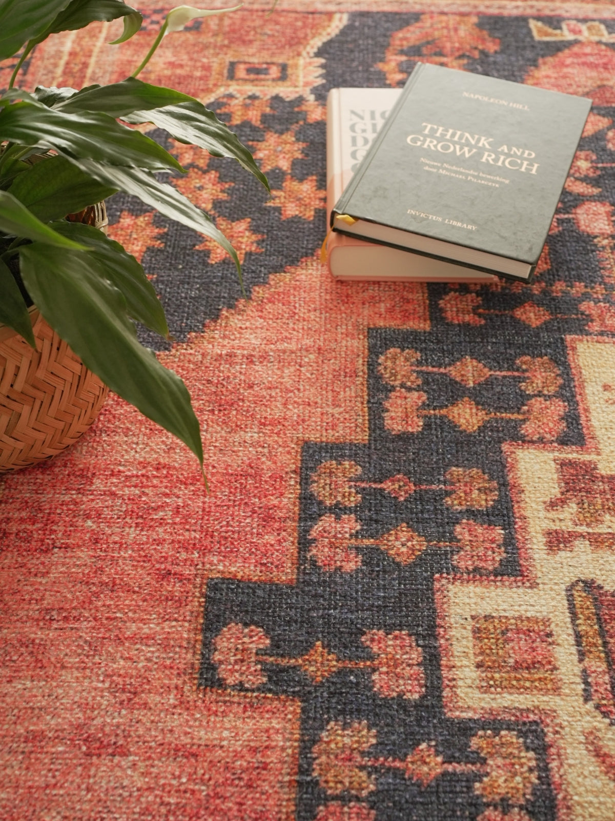 Die Teppiche aus der Vera Kollektion bestehen zu 80% aus recycelter Baumwolle und zu 20% aus Polyester. Sie sind 100% recycelbar und umweltfreundlich.