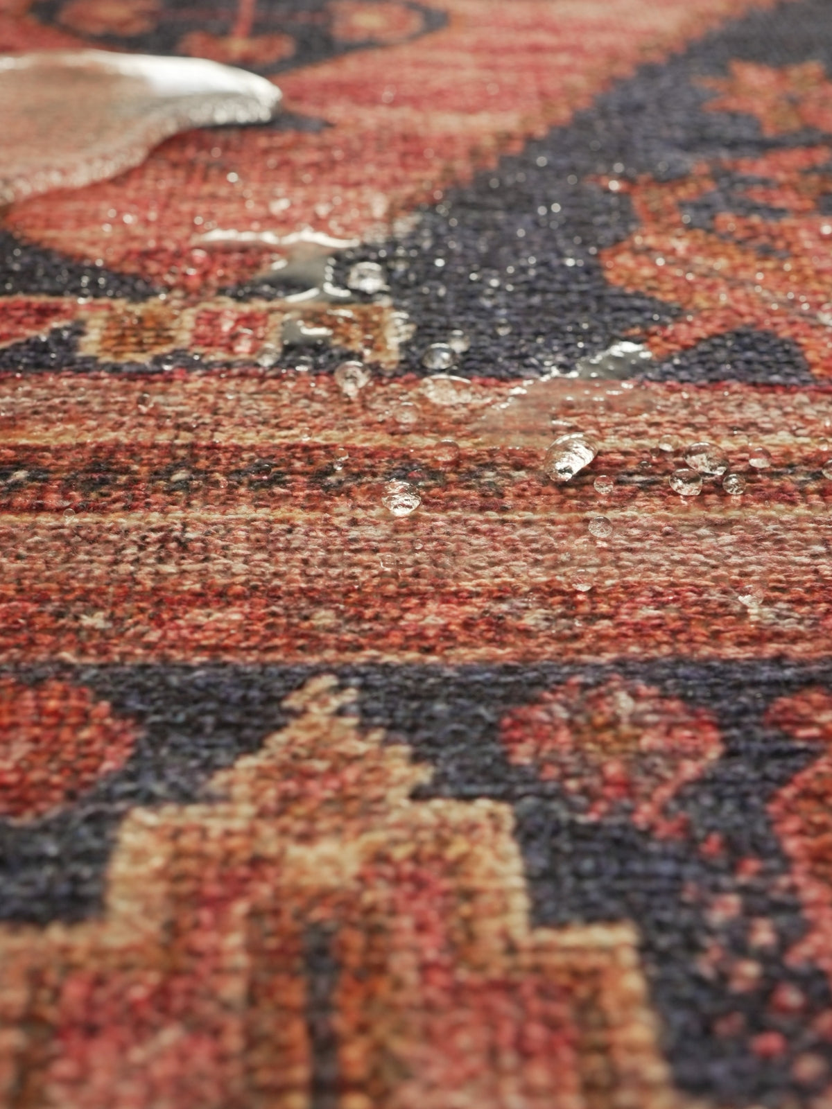 Wenn Flüssigkeiten wie ein Getränk auf den Teppich kommen, müssen Sie sich keine Sorgen machen: Unsere Teppiche sind schmutzabweisend. Durch eine spezielle Behandlung dringt verschüttete Flüssigkeit nicht sofort in den Kern der Stofffaser ein.