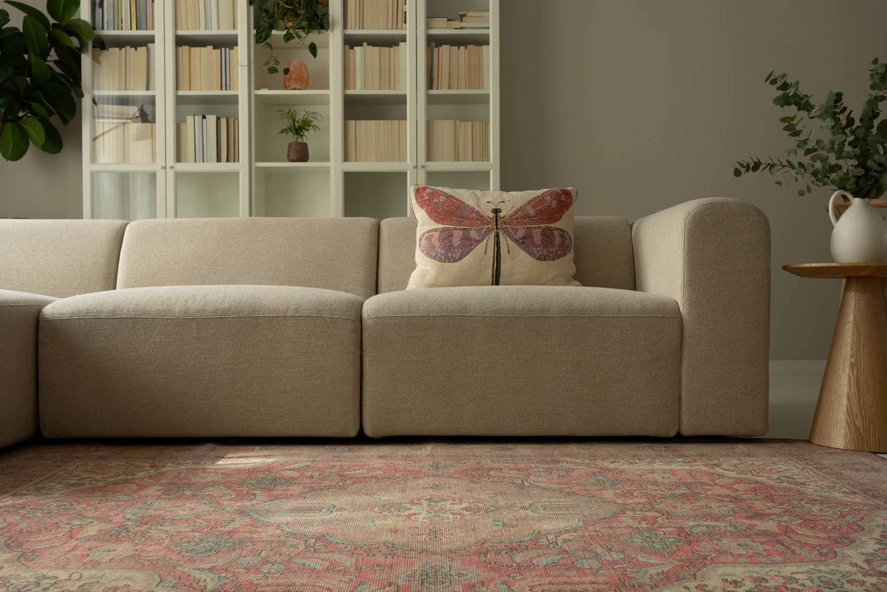 Dieser neutrale Teppich ist vielseitig und eignet sich hervorragend als Teppich für einen Eingangsbereich, Schlafzimmer oder Wohnzimmer, sowohl in modernen als auch in traditionellen Interieurs.